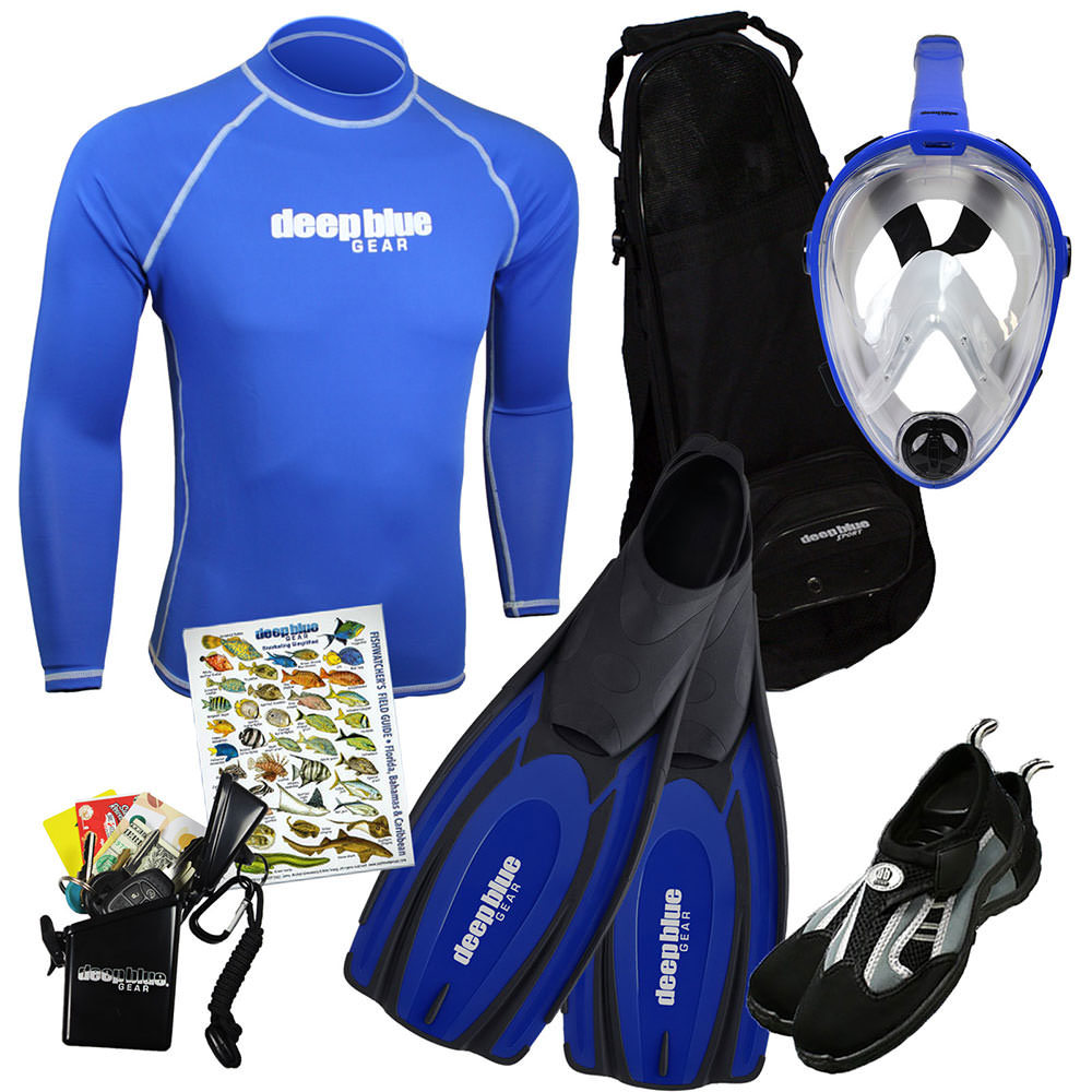 This set includes everything but the kitchen sink. Choose between a full face mask or a traditional mask and snorkel and customize the colors, rashguards, and sizes to match your loved one.