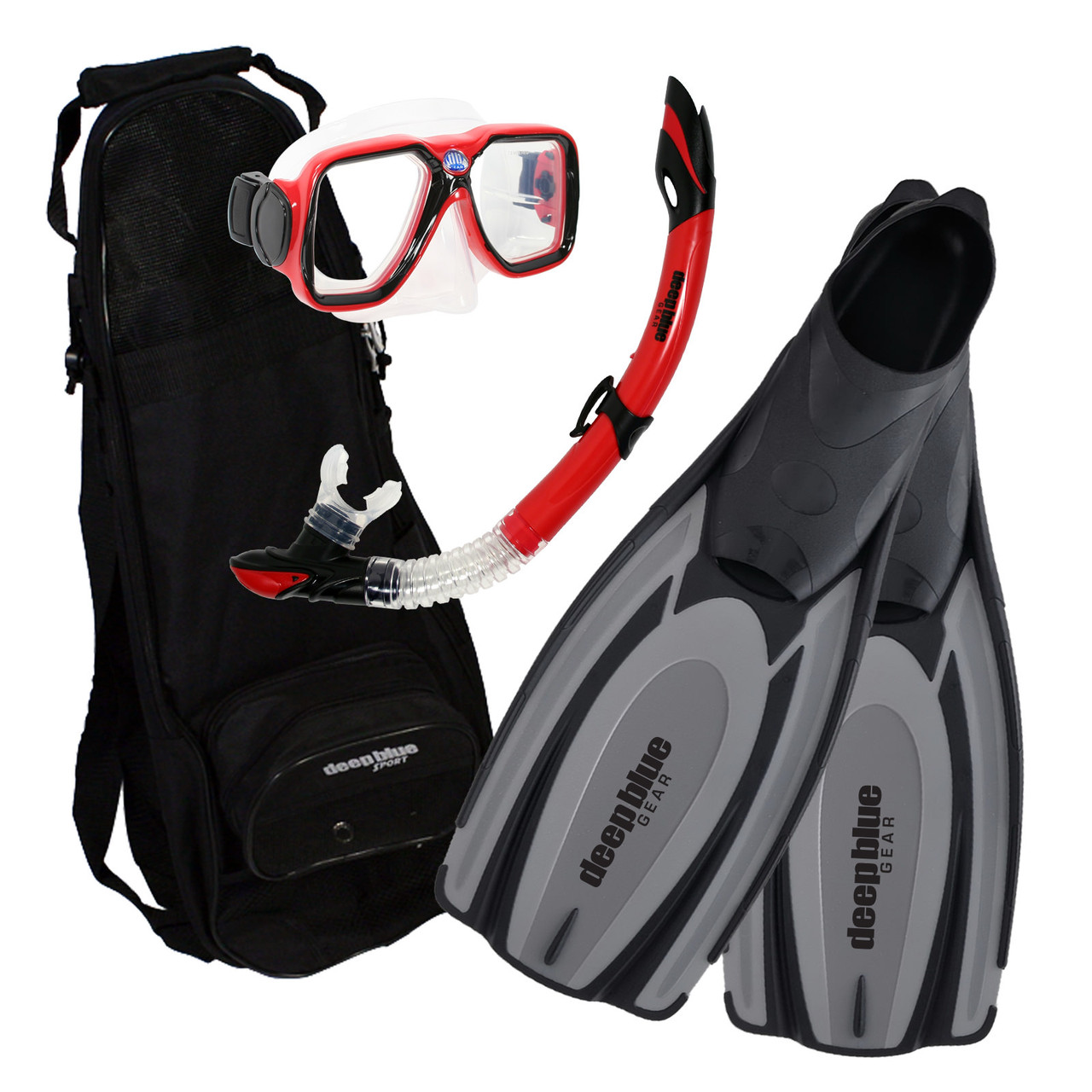 From beginner snorkelers to vetted experts, the Explorer Set is our most popular. You will save $51.35 by purchasing this set over purchasing these items separately. This set features a Maui or Montego Diving / Snorkeling Mask, Maui 2 Snorkel, Latitude 2 Fins, and a gear bag. Customize your set by including prescription lenses in the mask, upgrading the snorkel or gear bag, and adding on any desired accessories.