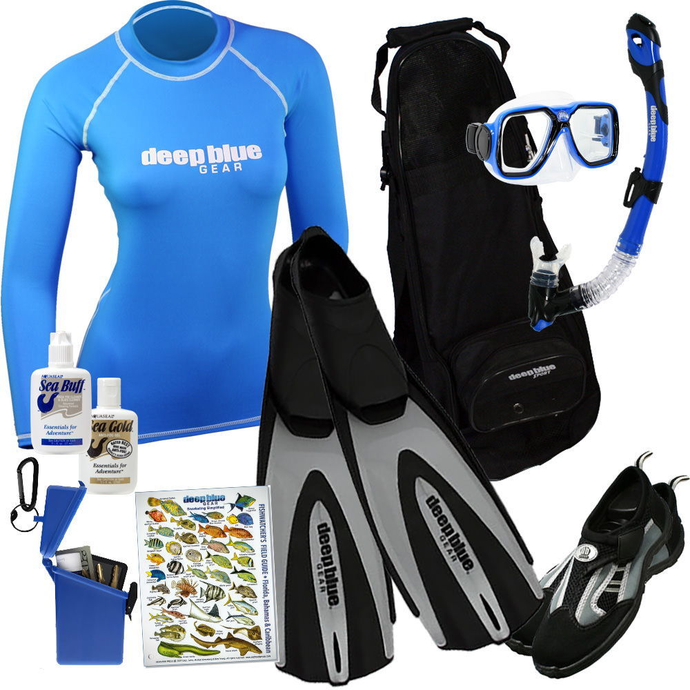 This set includes everything but the kitchen sink. Choose between a full face mask or a traditional mask and snorkel and customize the colors, rashguards, and sizes to match your loved one.