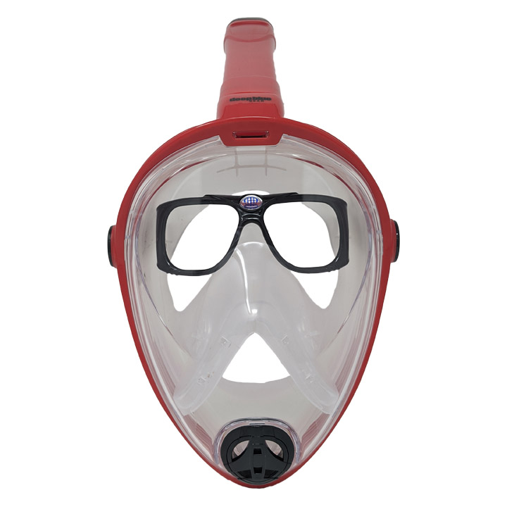 Enjoy optical correction in our Certified Safe Vista Vue Full Face Snorkeling Mask. This all-in-one mask and snorkel design enables you to breathe naturally through your nose and mouth. Offering a refined design of the air flow and purge valve system, the Vista Vue Full Face Snorkel Mask ensures optimal comfort, easy breathing and fog-free undersea viewing. This full face mask featuring our new optical frame insert allows you to see the ocean in our state of the art masks. The polycarbonate lenses in this frame are available in half diopter increments from -1.0 to -4.0. The newest option for vision correction while snorkeling from Deep Blue Gear, trusted vision experts since 2005. Not sure how to calculate your prescription values? Either upload your prescription here or use our Optical Lens Calculator below. This mask ships within one business day.