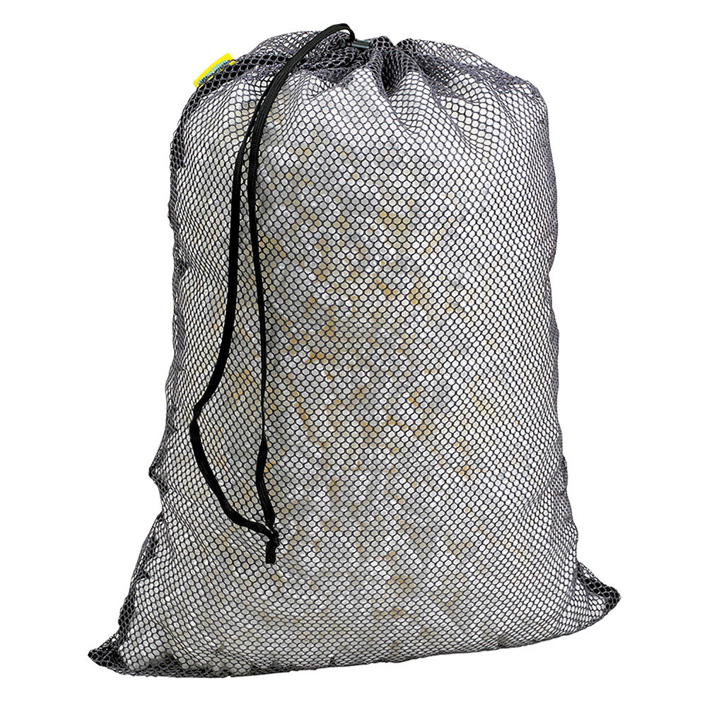 - Large Mesh Drawstring Gear Bag measures 26 x 38 inches (LxH)